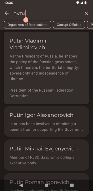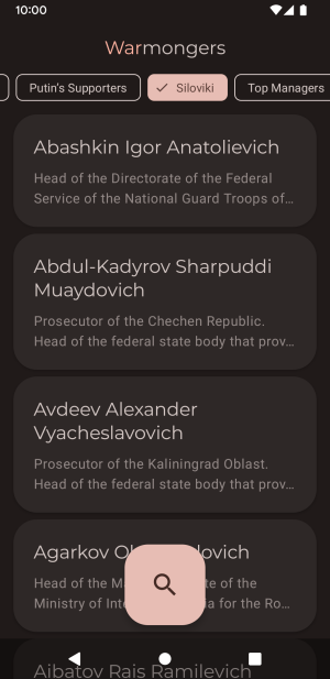 Searchable list of bribetakers and warmongers. More info on https://acf.international.