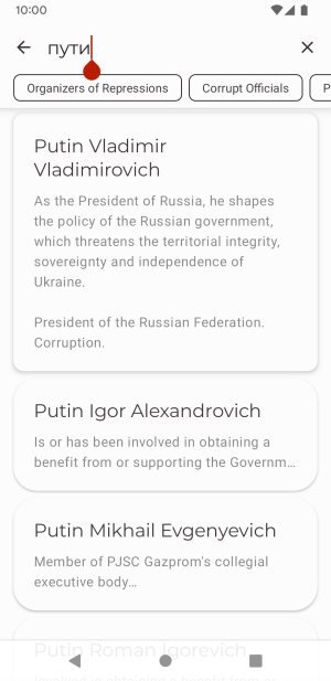 An Android app for searching for Putin's accomplices